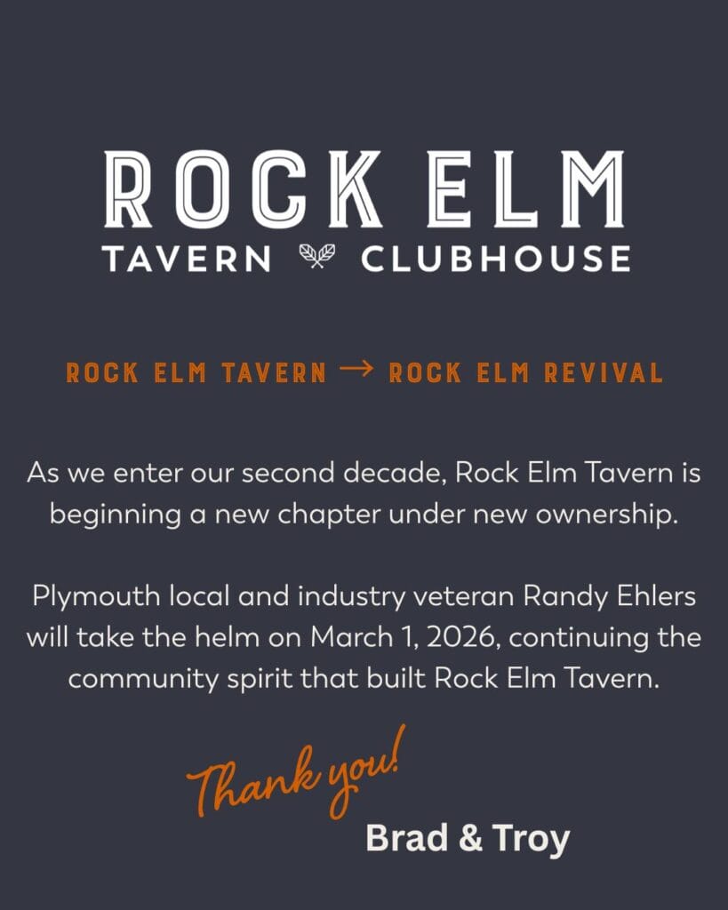 Rock Elm Tavern is entering its next chapter as Rock Elm Revival. Longtime local and restaurant pro Randy Ehlers will take over ownership on March 1, 2026.