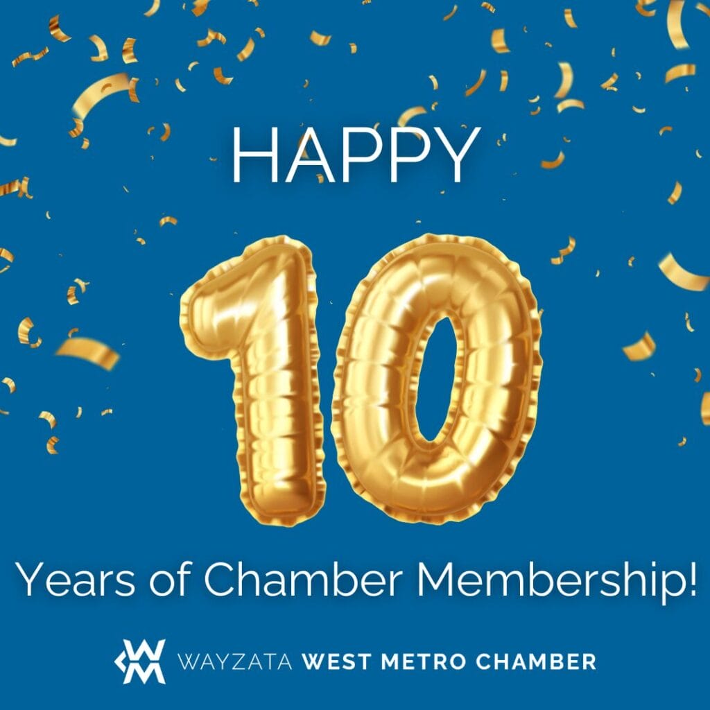 Special thank you to these amazing members for supporting the Chamber for 10 years: Avid Health and Wellness Chiropractic, Ben Johnson – Real Estate Nation RE/MAX Results, Birch’s on the Lake Brewhouse & Supperclub, Morrie’s Automotive Group, Nothing Bundt Cakes, Oh Baby!, Paradise Charter Cruises of Lake Minnetonka, Trean Corporation, Sandvold Financial Group