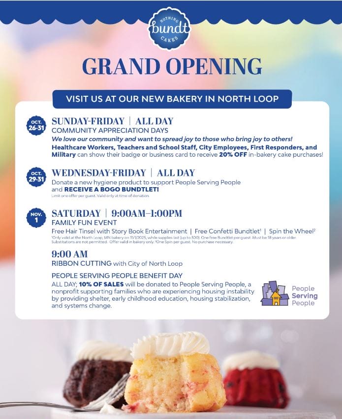 Nothing Bundt Cakes’ Kim Cassens and her team are opening up a new location in the North Loop! Check out their events coming up to celebrate their new space.